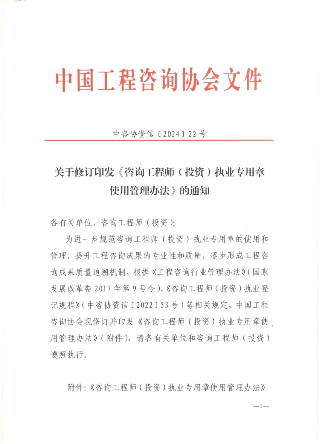 咨詢工程師(投資)執(zhí)業(yè)專用章使用管理辦法