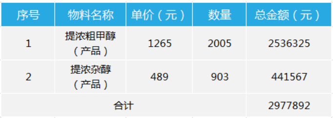 1、回收的甲醇純度平均達到98%(wt%);