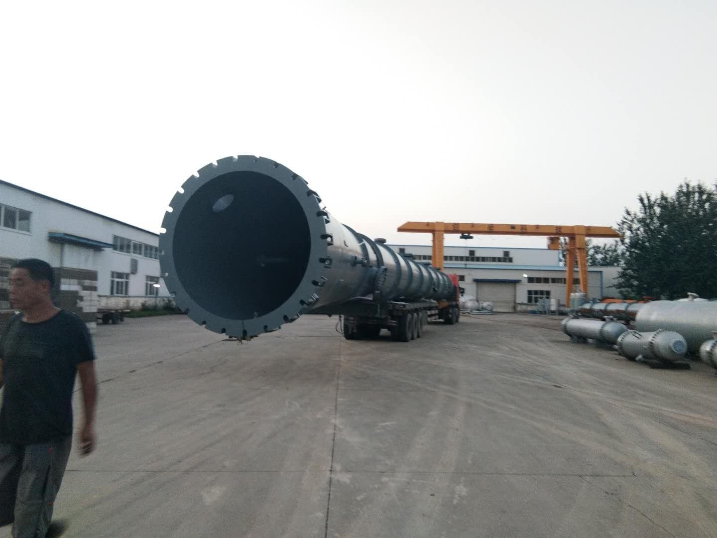 近日發貨的為脫C6塔,該塔除去裙座長度為45.4米,是我司迄今為止發貨的最長設備,該批設備的成功制作完成發貨標志著創舉公司在超大超長型塔設備設計制作方面又邁上了一個新的臺階。