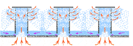 帽罩之間的對噴后自由落到塔板上繼續與板上空間的氣相接觸形成二次傳質;