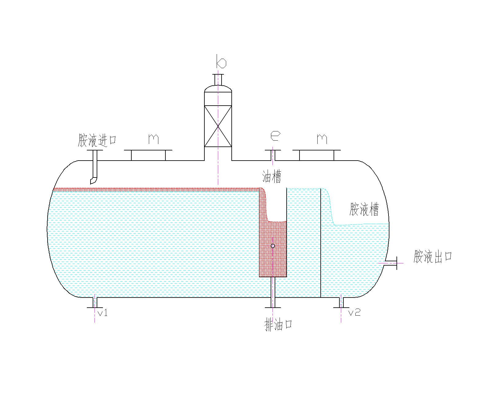 氣液混合物折返從帽罩側孔水平噴出,靠重力在塔板上部空間分離;