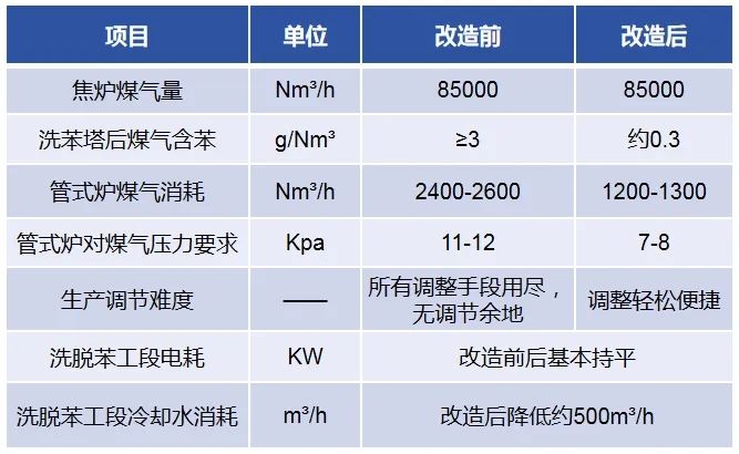 改造后貧油加熱、洗油再生控制更容易,同時可以改善循環洗油質量,以后如果使用中壓蒸汽加熱,效果會更好。