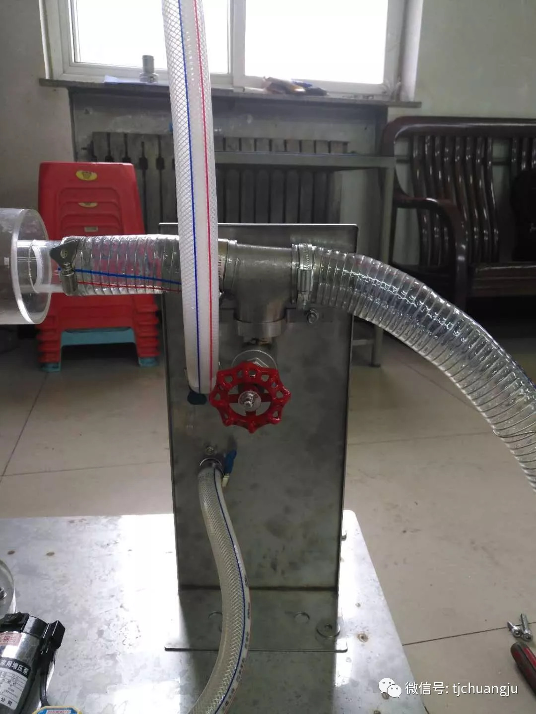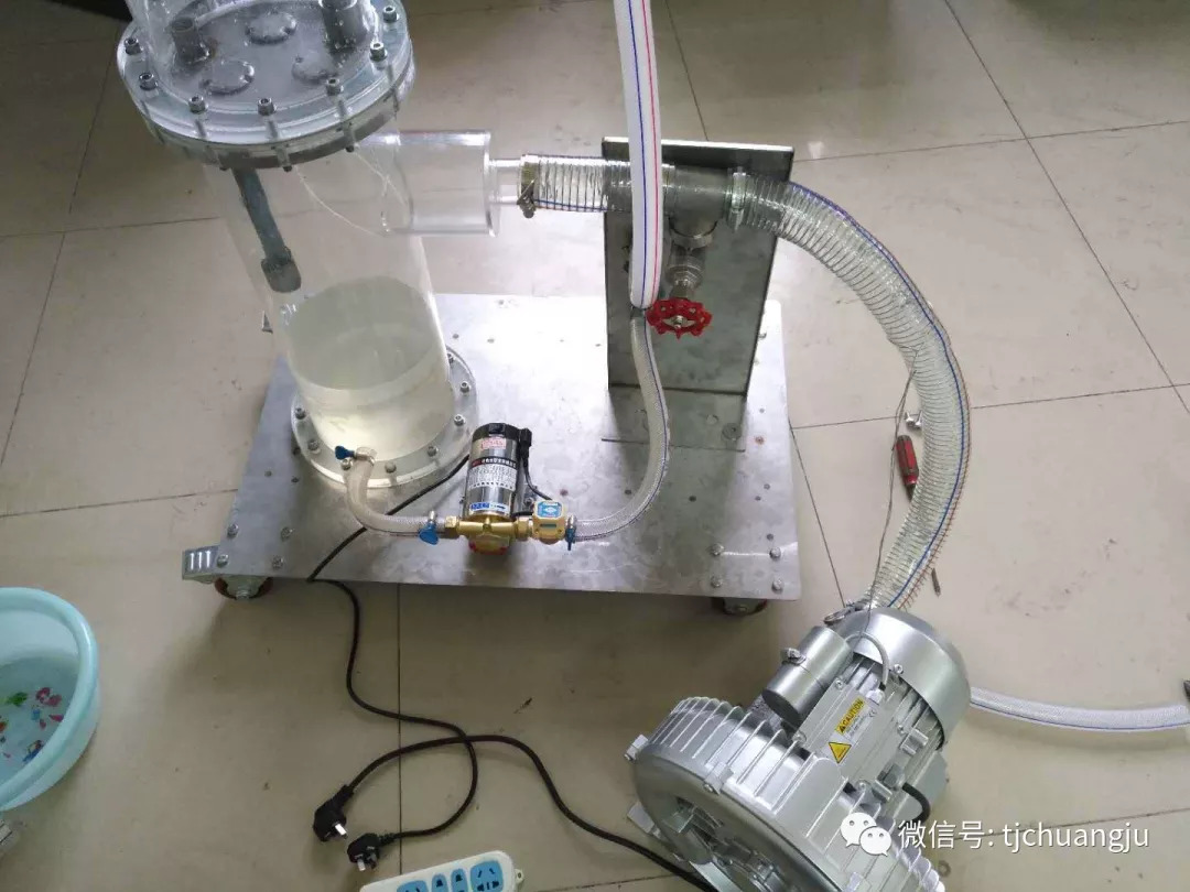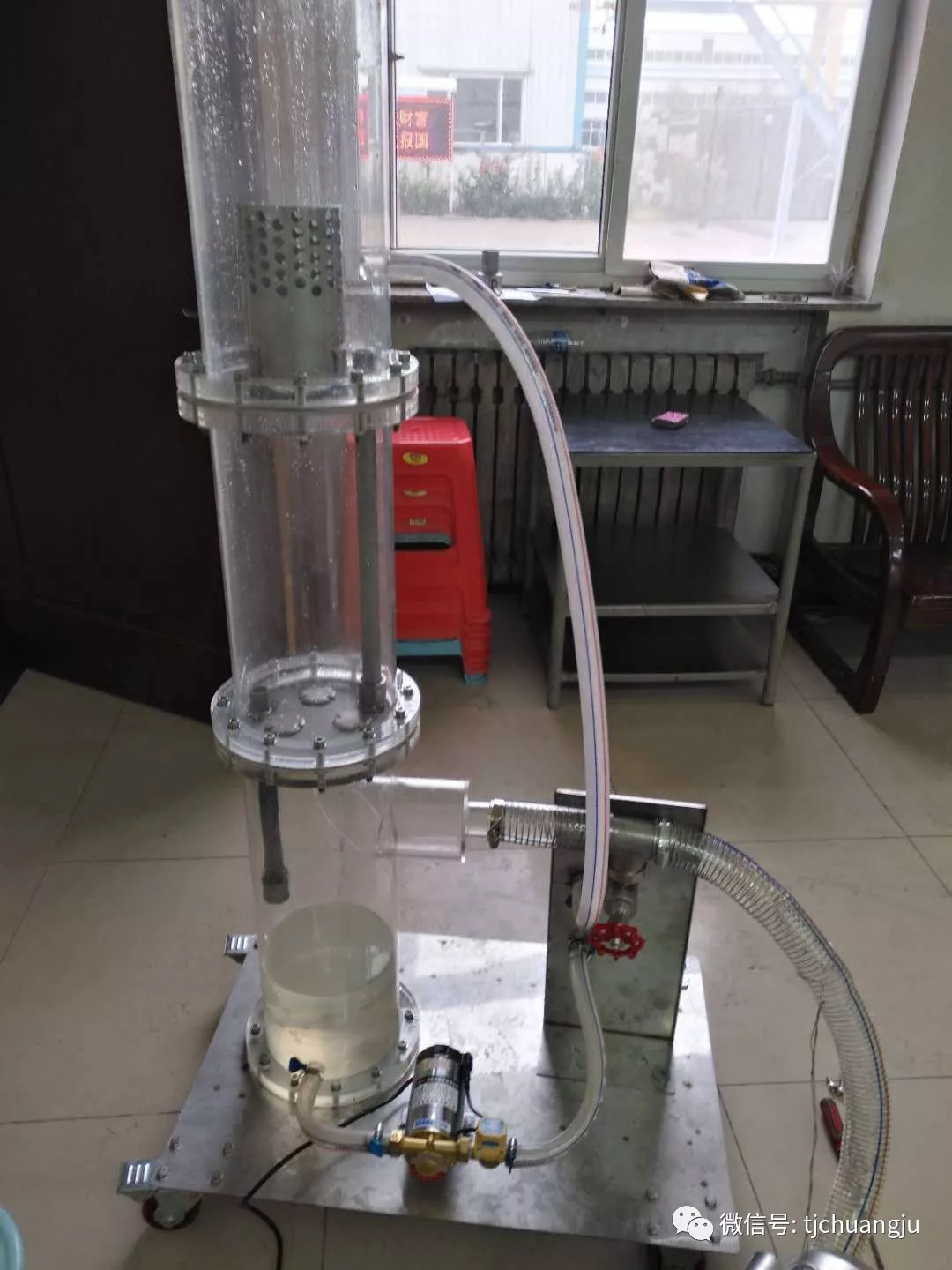 這是展會或行業會議展示專用的有機玻璃塔,配有水泵和風機。