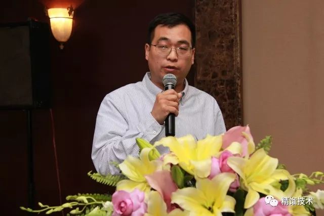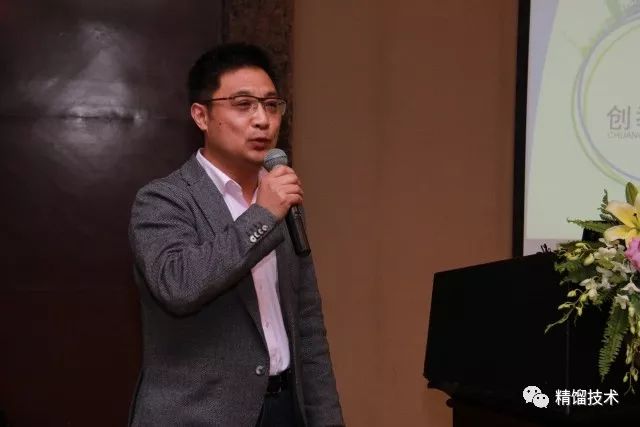 天津市創舉科技股份有限公司董事長——王柱祥王董致開幕詞,講述創舉逐步發展到上市的歷程,創辦創舉的兩個初心: 一是通過產業報國,建業時就確立了“創造財富 舉業報國”的宗旨。高度概括創舉系列塔板技術,優點是節能和抗堵。單一個膜噴塔板就可以為行業創造產值接近十億,逆流系列塔板解決困擾行業諸多廠家的液泛問題,目前創舉設計運行的已經有兩千多座,較傳統塔板處理能力提高一倍,穩定性更高,受到行業一致好評,與會嘉賓都為創舉深厚的技術研發實力所折服。