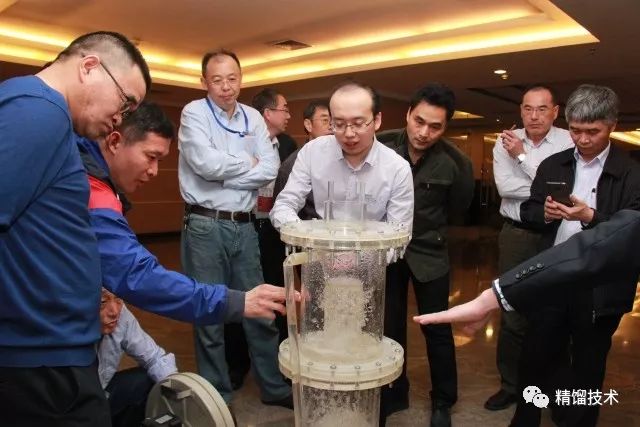 嘉賓們還觀摩了創舉帶來的冷模實驗塔,對逆流系列塔板的技術有了直觀的認識。