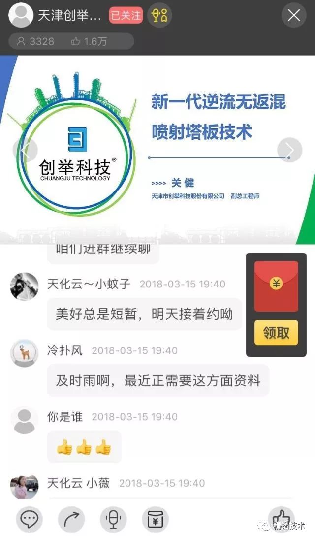 眾多化工人為創舉先進的塔板技術點贊,人氣破萬。